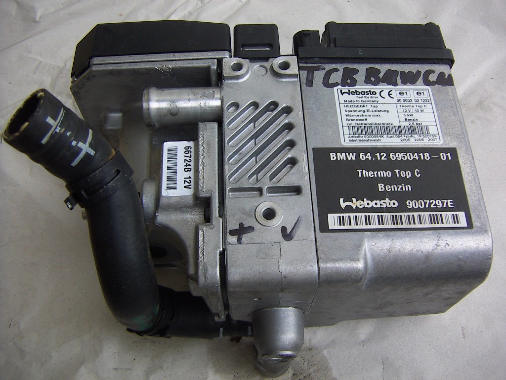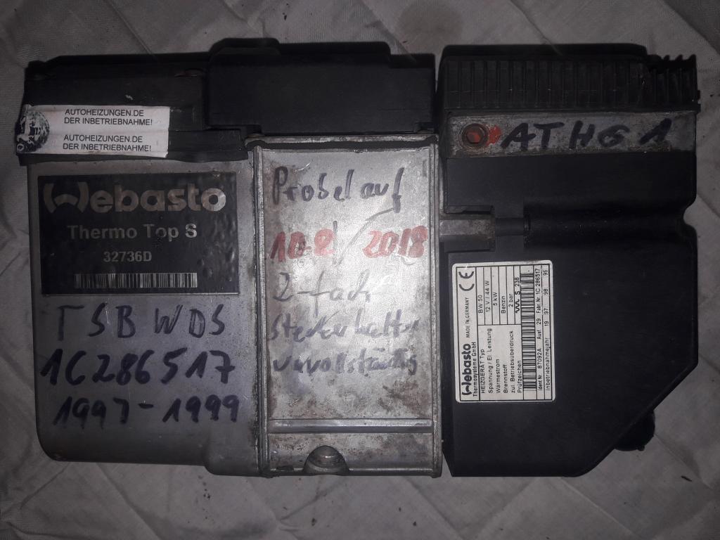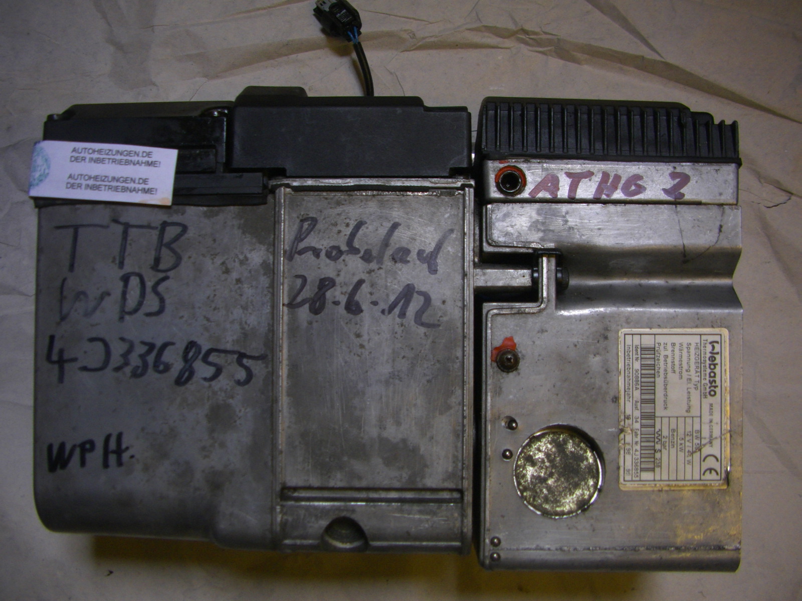 AUSTAUSCHHEIZGERÄTE (also nur das Heizgerät selbst) alle 12 Volt wenn nichts anderes angegeben, alle Funktionen natürlich bei Probelauf getestet UND MIT GEWÄHRLEISTUNG! Ist Ihre Standheizung defekt? Die schnelle, kostengünstige und einfache Lösung: Ein funktionsgeprüftes Austauschheizgerät von autoheizungen.de Eine Installation eines anderen Standheizungstyps anstelle Ihrer defekten Standheizung ist wesentlich aufwändiger und kostspieliger! AUSTAUSCHHEIZGERÄTE: Ich brauche auf jeden Fall ein Foto Ihrer Heizung vorab, es gibt diverse Spezialausführungen! Da ich einen Handel angemeldet habe darf ich Ihr Gerät nicht reparieren, nur eigene Geräte. Ausserdem reissen bei vielen Geräten eine oder mehrere Schrauben ab - Gerät wegwerfen. WEBASTO THERMOTOP BW50=Benzin kpl. Austauschheizgerät komplett und funktionsgetestet, gebraucht: (diese Heizgeräte sind gegenüber den Vorgängermodellen 100 teurer weil mit eingebautem Steuergerät) Bei manchen Webasto Thermotop Heizgeräten ist eine von zwei Schrauben des mittleren Staubdeckels unter dem die el. Anschlüsse sind abgerissen, so wie Ihnen das auch beim Ausbau passieren kann. Das Altteil ist damit natürlich nicht als demoliert anzusehen, sowas ist unvermeidbar. Für 30 mehr erhalten Sie eine bis auf die Schrauben die Brennergehäuse bzw. Brennluftgebläse und Wärmetauscher zusammenhalten mit gefetteten Schrauben wieder zusammengebautes Heizgerät. Dann können Sie wenn später mal irgendetwas defekt ist das Heizgerät demontieren ohne daß Ihnen dabei Schrauben abreissen und Sie das Heizgerät wegwerfen müssen. Thermotop Benzin 349 , #ATHGdiverse, davon ist eine (#9) mit Aludeckeln, ein Vorgängermodell der Plastikdeckelheizgeräte. Thermotop Diesel #ATHG 26 voll funktionsfähig, auch der oft defekte Brenner! 499,00 Thermotop T Benzin 369 , #ATHGdiverse, davon ist #8 mit Aludeckeln, ein Vorgängermodell der Plastikdeckelheizgeräte zu auch 369 Euro. Dieses Vorgängermodell, erkennbar an Alu-statt billiger Plastikdeckel hat ein Steuergerät mit nicht wasserdichten Steckern sowie primitiveren ab er daher reparablen elektronischen Bauteilen, einen Zugangsdeckel zur Kraftstoff-Fördereinrichtung, (bei den Nachfolgemodellen weggelassen), eingeschraubten statt nur noch eingeklebtem Wasserauslass-Stutzen und Messing- statt billigem Plastikmagnetventil (die Haupt- Fehlerursache der B/DW50-Modelle) was so gut wie nie defekt wird. Thermotop S Benzin 369 , #ATHG 1 Typ "S" hat eine separate Kraftstoffpumpe, ein Drittel der Heizung aus Plastik schwarz mit nur einem Kraftstoffanschluss, Laufzeit bis 1 Stunde von der Uhr her, mit einem Extraschalter unbegrenzt oder besser bis Ihre Batterie leer ist..... Alle anderen obigen Thermotop BW50 Modelle haben eine Laufzeit von 30 Minuten! Thermotop Benzin BW50: Ideal wenn Ihre Heizung mechanisch defekt ist aber das Steuergerät noch funktioniert: NUR BEI DIESEN Austauschheizungen: Bis auf das jeweils fehlende Steuergerät komplette funktionsgeprüfte Geräte: Frühe Ausführung mit Aludeckeln, nicht wasserdichten Steckern, MIT DEFEKTEM Steuergerät, evtl. reparierbar? ohne mittleren Deckel für Steckerabdeckung, ET209 guter Zustand, 99 , dto aber mit schwarzem Aludeckel, nicht wasserdichten Steckern, sehr guter Zustand, alle Gewinde intakt, Nr. ET213 99, dto. Normalzustand mit silikongedichtetem Kunstoff-Steuergerätedeckel, nicht wasserdichten Steckern ET212 199, Fotos der Geräte anfordern! Sie können diese Heizgeräte NUR gebrauchen wenn die Kühlflächenanordnung für die Transistoren Ihres Steuergerätes gleich sind! Bei Anfragen angeben ob Sie einen Aufkleber Thermotop "T" oben oder seitlich auf der Heizung haben, (eine "normale" Thermotop kann ohne weiteres mit einer Thermotop "T" ersetzt werden und umgekehrt), ob der Kabelbaum UNTER mittlerem Deckel (= nicht wasserdichte Steckerleiste) oder mit zwei ovalen Steckern (=theoretisch wasserdicht) von oben NEBEN mittlerem Deckel angeschlossen ist und ob Deckel aus Aluminium oder Plastik sind sowie wenn Sie eine Tele-Thermotop haben ob der Fernbedienungsempfänger in der Standheizung selbst im Steuergerätedeckel (erkennbar an einem speziellen Koaxialkabelstecker wie für Mobiltelefone der neben den anderen Kabeln dort herauskommt) oder separat eingebaut ist. Wenn Ihre Fernbedienung im Deckel des Steuergerätes eingebaut ist kann es ein Problem geben wenn der originale Deckel des Austauschheizgerätes abgeschraubt werden soll um den mit Ihrem Deckel mit eingebautem Empfänger zu ersetzen: 1. könnte es sein dass das Steuergerät des Austauschheizgerätes nicht die erforderlichen 3 Steckanschlüsse hat für den Empfänger und 2. dass bei dieser Aktion eine oder mehrere Schrauben des org. Deckels Austauschheizgerät abreissen. Um das zu vermeiden habe ich sofern die Standheizung einwandfrei funktionierte auch nicht diese Schrauben zu lösen versucht denn wenn auch nur eine davon abreisst kann der Steuergerätedeckel nicht mehr richtig dicht angezogen werden - Heizung unbrauchbar! Ideal ist ein Foto Ihres Heizgerätes von schräg oben was die Deckel und die Breitseite zeigt. Webasto Thermotop C: Bilder siehe unten! Webasto Thermotop C DIESEL universell passend, einwandfreier Zustand und funktion, mit Gewährleistung! ATHG # 6, 399 Webasto Thermotop C Benzin CAN-BUS Austauschheizgerät speziell für BMW: lt. org. Typschild: Art.Nr. 9000954K Ausf. 084 von 2005/2006/2007, auf darunter befindlichem schwarzen Typschild: BMW 64.126950418-01 Webasto Nr. 9007297E #13 ATHG 699 neuwertig! Webasto Thermotop C Benzin: NUR BEI DIESEN Austauschheizungen: Bis auf das jeweils fehlende Steuergerät komplette funktionsgeprüfte Geräte: ET109, eine Schraube Steuergerätedeckel abgerissen, 1 der 3 Befestigungsschrauben für den Heizgerätehalter abgerissen, evtl. ausbohren, 99 , dto. aber unbeschädigt ET109a 149 Bilder anfordern! WEBASTO BBW 46 oder DBW46: Austauschheizgerät DBW46 (auch mit anderem Vlies für Benzin verwendbar) gebraucht 299 nicht mehr lieferbar! Send