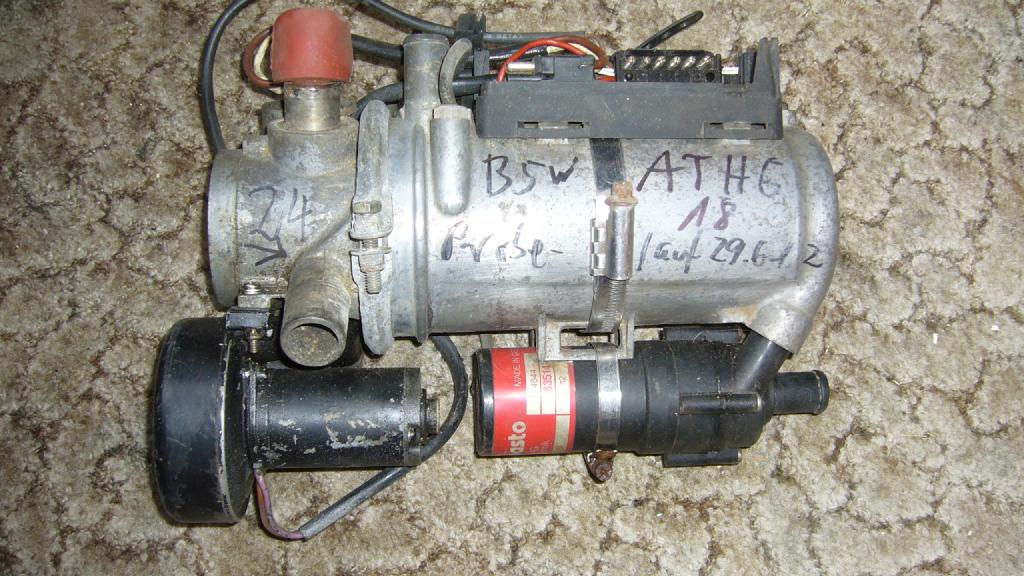 AUSTAUSCHHEIZGERÄTE (also nur das Heizgerät selbst) alle 12 Volt wenn nichts anderes angegeben, alle Funktionen natürlich bei Probelauf getestet UND MIT GEWÄHRLEISTUNG! Ist Ihre Standheizung defekt? Die schnelle, kostengünstige und einfache Lösung: Ein funktionsgeprüftes Austauschheizgerät von autoheizungen.de Eine Installation eines anderen Standheizungstyps anstelle Ihrer defekten Standheizung ist wesentlich aufwändiger und kostspieliger! AUSTAUSCHHEIZGERÄTE: Ich brauche auf jeden Fall ein Foto Ihrer Heizung vorab, es gibt diverse Spezialausführungen! Da ich einen Handel angemeldet habe darf ich Ihr Gerät nicht reparieren, nur eigene Geräte. Ausserdem reissen bei vielen Geräten eine oder mehrere Schrauben ab - Gerät wegwerfen. WEBASTO THERMOTOP BW50=Benzin kpl. Austauschheizgerät komplett und funktionsgetestet, gebraucht: (diese Heizgeräte sind gegenüber den Vorgängermodellen 100 teurer weil mit eingebautem Steuergerät) Bei manchen Webasto Thermotop Heizgeräten ist eine von zwei Schrauben des mittleren Staubdeckels unter dem die el. Anschlüsse sind abgerissen, so wie Ihnen das auch beim Ausbau passieren kann. Das Altteil ist damit natürlich nicht als demoliert anzusehen, sowas ist unvermeidbar. Für 30 mehr erhalten Sie eine bis auf die Schrauben die Brennergehäuse bzw. Brennluftgebläse und Wärmetauscher zusammenhalten mit gefetteten Schrauben wieder zusammengebautes Heizgerät. Dann können Sie wenn später mal irgendetwas defekt ist das Heizgerät demontieren ohne daß Ihnen dabei Schrauben abreissen und Sie das Heizgerät wegwerfen müssen. Thermotop Benzin 349 , #ATHGdiverse, davon ist eine (#9) mit Aludeckeln, ein Vorgängermodell der Plastikdeckelheizgeräte. Thermotop Diesel #ATHG 26 voll funktionsfähig, auch der oft defekte Brenner! 499,00 Thermotop T Benzin 369 , #ATHGdiverse, davon ist #8 mit Aludeckeln, ein Vorgängermodell der Plastikdeckelheizgeräte zu auch 369 Euro. Dieses Vorgängermodell, erkennbar an Alu-statt billiger Plastikdeckel hat ein Steuergerät mit nicht wasserdichten Steckern sowie primitiveren ab er daher reparablen elektronischen Bauteilen, einen Zugangsdeckel zur Kraftstoff-Fördereinrichtung, (bei den Nachfolgemodellen weggelassen), eingeschraubten statt nur noch eingeklebtem Wasserauslass-Stutzen und Messing- statt billigem Plastikmagnetventil (die Haupt- Fehlerursache der B/DW50-Modelle) was so gut wie nie defekt wird. Thermotop S Benzin 369 , #ATHG 1 Typ "S" hat eine separate Kraftstoffpumpe, ein Drittel der Heizung aus Plastik schwarz mit nur einem Kraftstoffanschluss, Laufzeit bis 1 Stunde von der Uhr her, mit einem Extraschalter unbegrenzt oder besser bis Ihre Batterie leer ist..... Alle anderen obigen Thermotop BW50 Modelle haben eine Laufzeit von 30 Minuten! Thermotop Benzin BW50: Ideal wenn Ihre Heizung mechanisch defekt ist aber das Steuergerät noch funktioniert: NUR BEI DIESEN Austauschheizungen: Bis auf das jeweils fehlende Steuergerät komplette funktionsgeprüfte Geräte: Frühe Ausführung mit Aludeckeln, nicht wasserdichten Steckern, MIT DEFEKTEM Steuergerät, evtl. reparierbar? ohne mittleren Deckel für Steckerabdeckung, ET209 guter Zustand, 99 , dto aber mit schwarzem Aludeckel, nicht wasserdichten Steckern, sehr guter Zustand, alle Gewinde intakt, Nr. ET213 99, dto. Normalzustand mit silikongedichtetem Kunstoff-Steuergerätedeckel, nicht wasserdichten Steckern ET212 199, Fotos der Geräte anfordern! Sie können diese Heizgeräte NUR gebrauchen wenn die Kühlflächenanordnung für die Transistoren Ihres Steuergerätes gleich sind! Bei Anfragen angeben ob Sie einen Aufkleber Thermotop "T" oben oder seitlich auf der Heizung haben, (eine "normale" Thermotop kann ohne weiteres mit einer Thermotop "T" ersetzt werden und umgekehrt), ob der Kabelbaum UNTER mittlerem Deckel (= nicht wasserdichte Steckerleiste) oder mit zwei ovalen Steckern (=theoretisch wasserdicht) von oben NEBEN mittlerem Deckel angeschlossen ist und ob Deckel aus Aluminium oder Plastik sind sowie wenn Sie eine Tele-Thermotop haben ob der Fernbedienungsempfänger in der Standheizung selbst im Steuergerätedeckel (erkennbar an einem speziellen Koaxialkabelstecker wie für Mobiltelefone der neben den anderen Kabeln dort herauskommt) oder separat eingebaut ist. Wenn Ihre Fernbedienung im Deckel des Steuergerätes eingebaut ist kann es ein Problem geben wenn der originale Deckel des Austauschheizgerätes abgeschraubt werden soll um den mit Ihrem Deckel mit eingebautem Empfänger zu ersetzen: 1. könnte es sein dass das Steuergerät des Austauschheizgerätes nicht die erforderlichen 3 Steckanschlüsse hat für den Empfänger und 2. dass bei dieser Aktion eine oder mehrere Schrauben des org. Deckels Austauschheizgerät abreissen. Um das zu vermeiden habe ich sofern die Standheizung einwandfrei funktionierte auch nicht diese Schrauben zu lösen versucht denn wenn auch nur eine davon abreisst kann der Steuergerätedeckel nicht mehr richtig dicht angezogen werden - Heizung unbrauchbar! Ideal ist ein Foto Ihres Heizgerätes von schräg oben was die Deckel und die Breitseite zeigt. Webasto Thermotop C: Bilder siehe unten! Webasto Thermotop C DIESEL universell passend, einwandfreier Zustand und funktion, mit Gewährleistung! ATHG # 6, 399 Webasto Thermotop C Benzin CAN-BUS Austauschheizgerät speziell für BMW: lt. org. Typschild: Art.Nr. 9000954K Ausf. 084 von 2005/2006/2007, auf darunter befindlichem schwarzen Typschild: BMW 64.126950418-01 Webasto Nr. 9007297E #13 ATHG 699 neuwertig! Webasto Thermotop C Benzin: NUR BEI DIESEN Austauschheizungen: Bis auf das jeweils fehlende Steuergerät komplette funktionsgeprüfte Geräte: ET109, eine Schraube Steuergerätedeckel abgerissen, 1 der 3 Befestigungsschrauben für den Heizgerätehalter abgerissen, evtl. ausbohren, 99 , dto. aber unbeschädigt ET109a 149 Bilder anfordern! WEBASTO BBW 46 oder DBW46: Austauschheizgerät DBW46 (auch mit anderem Vlies für Benzin verwendbar) gebraucht 299 nicht mehr lieferbar! Send