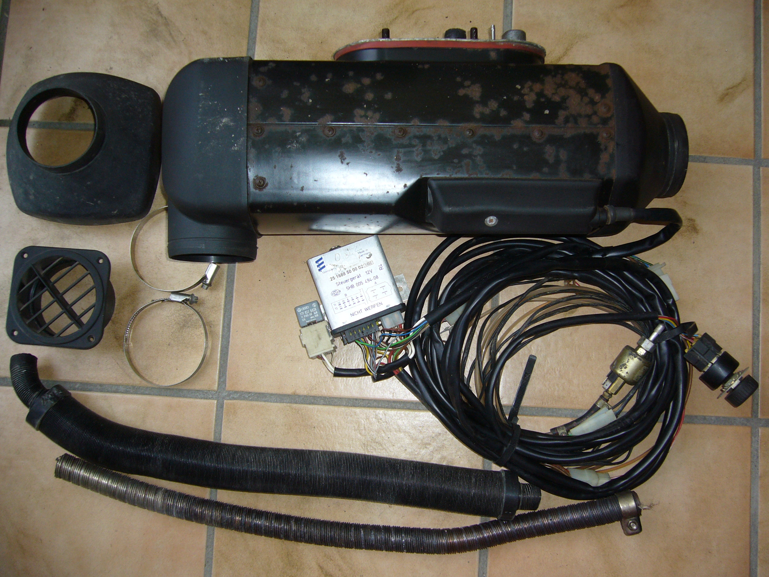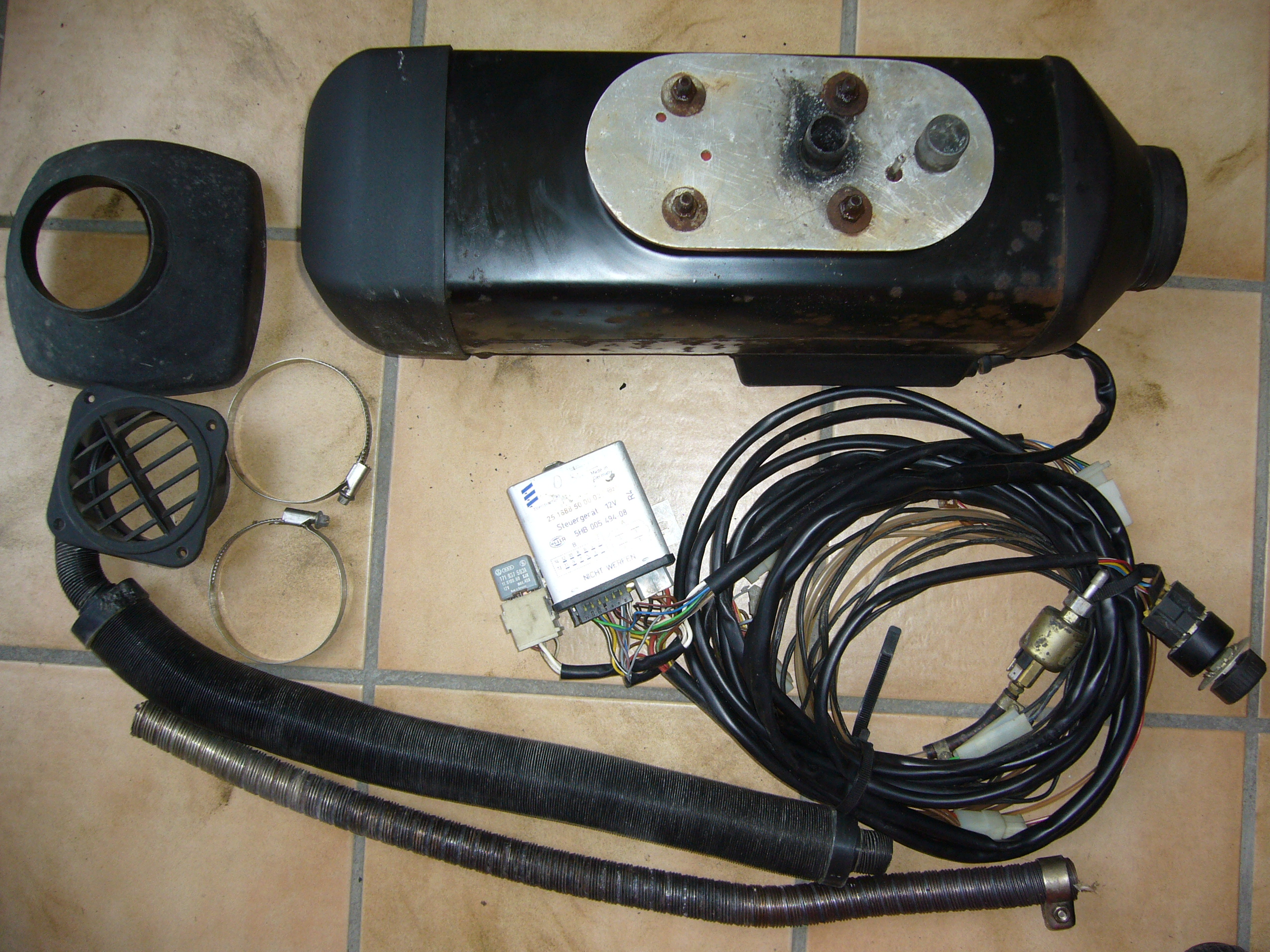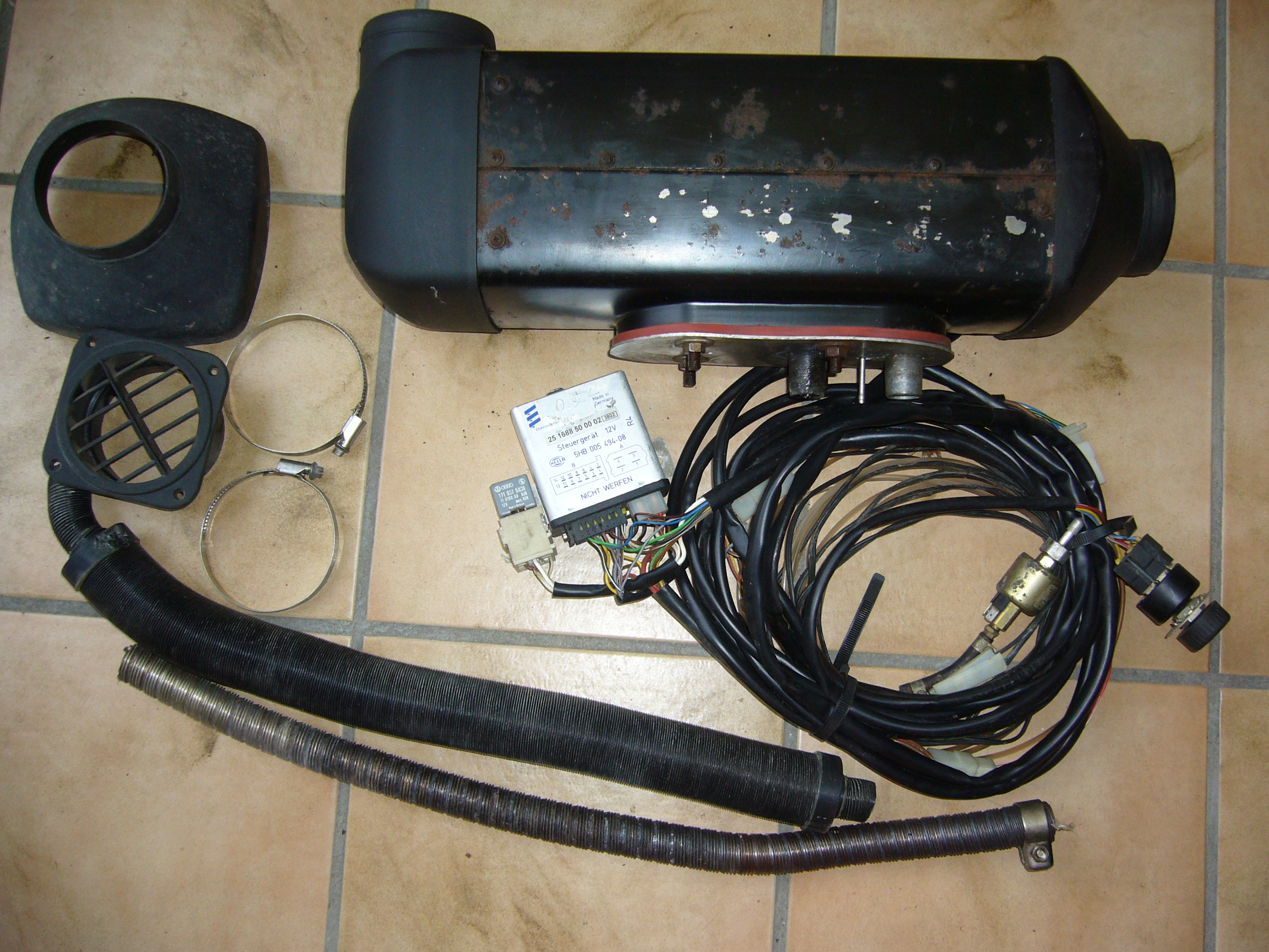 Standheizungen Wasser Luft Benzin Diesel Fernbedienungen Nov. 2020 Wenn Sie meine Internetseite bei Google nicht finden liegt das daran dass ich die nicht "schmiere", also nicht für ein Platzierung auf den ersten Seiten bezahle. Lesen Sie den Spiegel 43/2012 ab Seite 86. Demnach bezahlen zumindest auf der ersten Seite eines halbwegs attraktiven Begriffs praktisch alle für ihre Position. Damit werden Sie an teurere Anbieter weitergeleitet. Ich habe umgehend die Suchmaschine auf Bing von Microsoft gewechselt da ich mich nicht zu geschmierten Ergebnissen führen lasse! Bei Bing "Standheizungsersatzteile" eingegeben und dort stehe ich an erster Stelle OHNE dafür zu schmieren! Zu dieser Liste sollten Sie unbedingt meine Seite autoheizungen.de kennen dann wissen Sie was die einzelnen Standheizungsbezeichnungen bedeuten! * Wenn der Text bei Ihnen durcheinander erscheint oben links auf Format - Zeilenumbruch klicken! * Alle Standheizungen haben probegelaufen und haben GEWÄHRLEISTUNG! WASSERSTANDHEIZUNGEN komplett DIESEL 12 V (Von allen Standheizungstypen habe ich funktionsgeprüfte Austauschheizgeräte, siehe unter Austauschheizgeräte!) Angegeben sind: Hersteller und Typ, Erstinbetriebnahmejahr lt. Typenschild, Beschreibung der Heizung, Preis , Kartonnr.# Webasto Thermotop T DW50 1999 OHNE Uhr Brenner nicht abgenutzt wie sonst üblich,"T = für größere Motoren" 549 NUR DIREKTKAUF OHNE EBAY! #304 Foto anfordern! Keine weiteren Austauschheizgeräte in DIESEL mehr lieferbar! Abkürzungen: DU=Digitaluhr, KP=Kraftstoffpumpe SG=Steuergerät, WP = Wasserpumpe WASSERSTANDHEIZUNGEN komplett BENZIN 12 V (Von allen Standheizungstypen habe ich funktionsgeprüfte Austauschheizgeräte, siehe unten!) Angegeben sind: Hersteller und Typ, Erstinbetriebnahmejahr lt. Typenschild, Beschreibung der Heizung, Preis , Kartonnr.# Web.Thermotop BW50 2001 kpl. aber ohne Uhr, evtl. eine Fernbedienung dazubestellen, siehe weiter unten 379 #306 WDS, Foto siehe unten! Web.Thermotop BW50 2000 kpl. aber ohne Uhr, evtl. eine Fernbedienung dazubestellen, siehe weiter unten 379 #325 WDS, Foto siehe unten! Weitere Standheizungen NUR NOCH ALS AUSTAUSCHHEIZGERÄT lieferbar, dass heisst nur das Heizgerät OHNE sonstiges Zubehör, siehe Austauschheizgeräte Vorteil der Webasto Thermotopmodelle und Eberspächer Hydronic ist ihre kleine Bauweise, Nachteil ist daß die Heizungen sofern sie noch keine Torxschrauben haben meistens nicht zu demontieren sind (falls ein Teil defekt wird) weil die Schrauben festgerostet sind und abreissen - Heizung wegwerfen oder ein gebr. Ersatzteil aus meiner Ersatzteilliste kaufen. Alle Heizungen die ich demontiert habe werden natürlich mit gefetteten Schrauben wieder zusammengebaut. Zusätzlich zur normalen Universaleinbauanleitung erhalten Sie von mir für Laien die den Selbsteinbau erstmalig machen verständlich geschriebene weitere Einbau- und Anschlußhinweise (Fz.-Gebläse und Kraftstoffpumpenanschluß, verschiedene Arten Wasseranschluß auch mit Einwegventil + Wasserthermostaten, Funktionsweise.) Zudem sind bei allen gebrauchten Heizungen die Kabelenden mit Verbindungshinweisen versehen sodaß Sie sich nicht erst stundenlang durch den Schaltplan arbeiten müssen. Selbstverständlich ist unbegrenzte telefonische Hilfestellung beim Einbau sowie bei evtl. später nach Jahren auftauchenden Problemen. Was das wert ist, wissen Sie nach nur einem Werkstattbesuch!! LUFTSTANDHEIZUNGEN komplett (B = Benzin, D = Diesel) 12 Volt Angegeben sind: Hersteller und Typ, Erstinbetriebnahmejahr lt. Typenschild, Beschreibung der Heizung, Preis , Kartonnr.# Eberspächer D5L 1993 kpl. mit Regelschalter, gerader und 90° Ausströmkappe, Ausströmer, Extra Glühkerze + -sieb 499 #500 Neue Ausströmer siehe Ersatzteilliste! Foto der Heizung siehe unten! FUNKFERNBEDIENUNGEN komplett (Einzelteile siehe Ersatzteilliste) An jede Standheizung kann eine Funkfernbedienung angeschlossen werden. Sie besteht aus einem Handsender sowie im Fz. einzubauendem Empfänger mit nur 3 Kabeln: Plus, Minus und dem Schaltplus. Eine Funkfernbedienung nützt jedoch nur etwas, wenn sie die Heizung aufgrund genügender Reichweite (die garnicht groß genug sein kann, da dazwischenstehende Häuser etc. die Reichweite radikal verkürzen) auch sicher einschaltet. Nach eigener Erfahrung sind nur die ersten Funkfernbedienungen von Webasto, die Telestart 1 und die T 3 (baugleich T 5) wegen ihrer wirklich exzellenten Reichweite brauchbar. Die T 1 ist zum Ein- und Ausschalten, 7 cm kurze separate Empfängeantenne auf Hutablage, ein Timer im Empfänger (Maße 19x11x4 cm) schaltet, wenn Sie nicht vorher per Fernbedienung wieder ausschalten, automatisch nach 1 Std. Heizbetrieb ab. Sie kostete zuletzt DM 1707, danach gab es die T 2, die war mit DM 1116 zwar billiger, die Reichweite aber völlig unbrauchbar. Dann kam die T 3 mit 60 Min. Einschaltdauer bzw. die T 5 mit 30 Min. Einschaltdauer, bei erneutem drücken weitere 30 Min. Einschaltdauer, auch nur noch zum Einschalten, Montage des Empfängers mit eingebauter Antenne auf der Hutablage, ein Timer schaltet die Heizung automatisch nach 30 bzw. 60 Min. ab. Sie hat die gleiche exzellente Reichweite wie das erste Modell und kostete "nur" noch DM 1116. Die danach folgenden Modelle waren die T 6, sie sieht aus wie ein ausziehbares Maßband und war auch von Maßbandqualität mit angegebener Reichweite von 300 m und das für DM 700, danach die T 60, (Einschaltzeit 30 Min. bei grüner Leuchtdiode, 60 Min. bei roter Leuchtdiode) wieder zum Ein- und Ausschalten, Empfänger bei beiden Fernbedienungen einfach im Steuergerätedeckel der Thermotopheizungen eingebaut, mit einem extra Unterteil auch separat zu montieren, dann die T 70 (mit zwischen 10 und 60 Min. einstellbarer Einschaltzeit) mit separat zu installierendem Empfänger, auch zum Ein- und Ausschalten, danach die T 80/90 schließlich mit Rückmeldung ob die Heizung überhaupt läuft, die braucht man auch wegen der lächerlichen Reichweite. Ab T 6 alle Empfänge